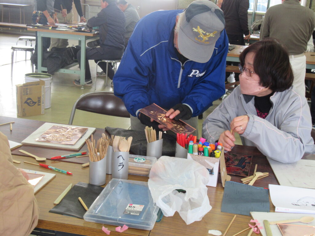 また、同日同場所において、昨年度に引き続きものづくり体験(銅板レリーフ製作)を実施いたしました。